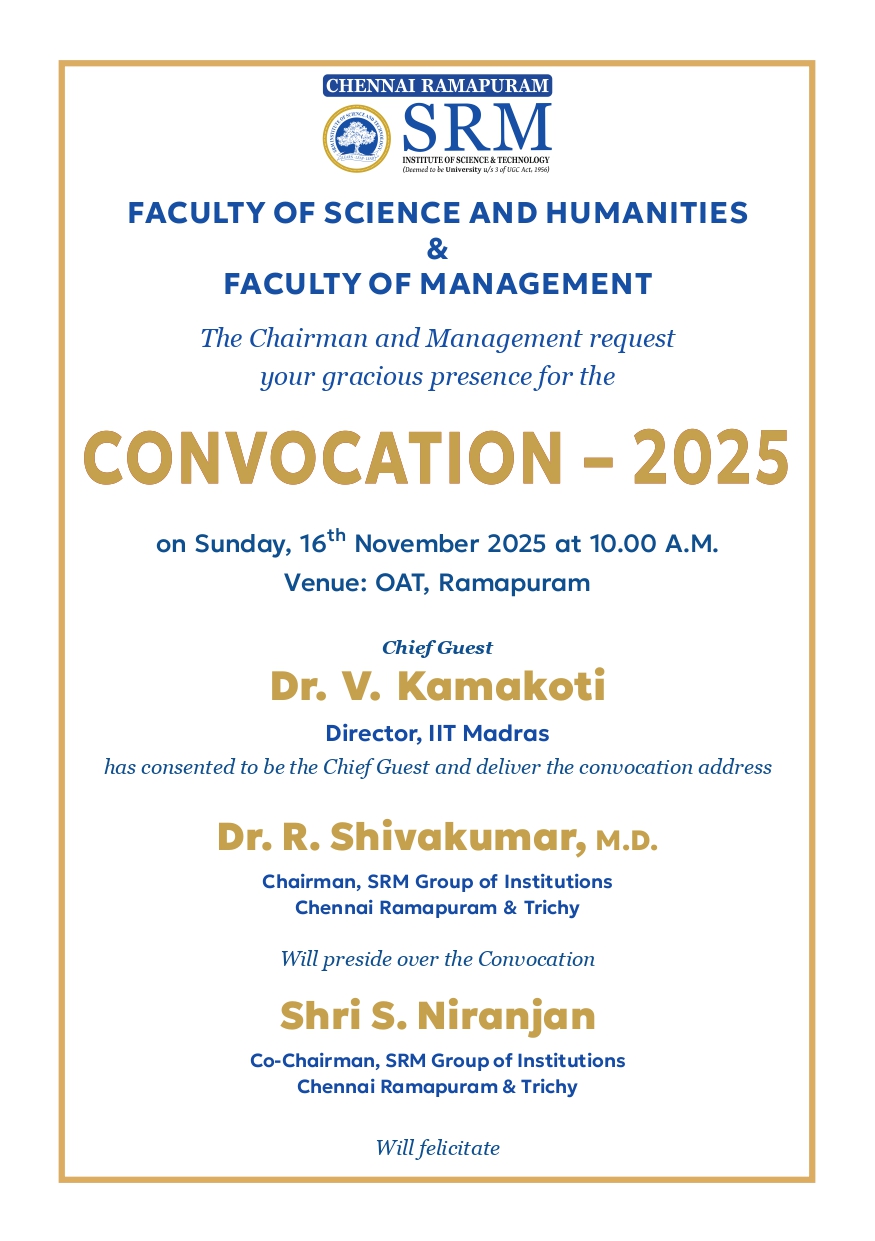 Welcome to a world of possibilities. Welcome to the Faculty of Science and Humanities at SRM IST, Ramapuram.