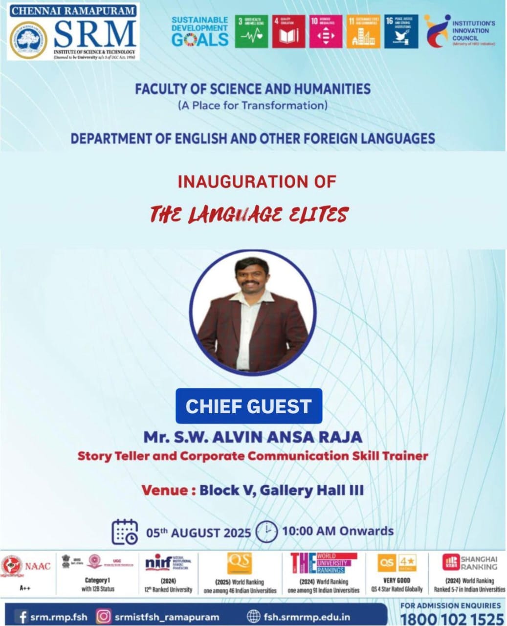 A grand opening to mark the beginning of “The Language Elites” — an initiative to empower students through linguistic excellence and literary pursuits. - Keynote Address by Chief Guest S. W. Alvin Ansa Raja