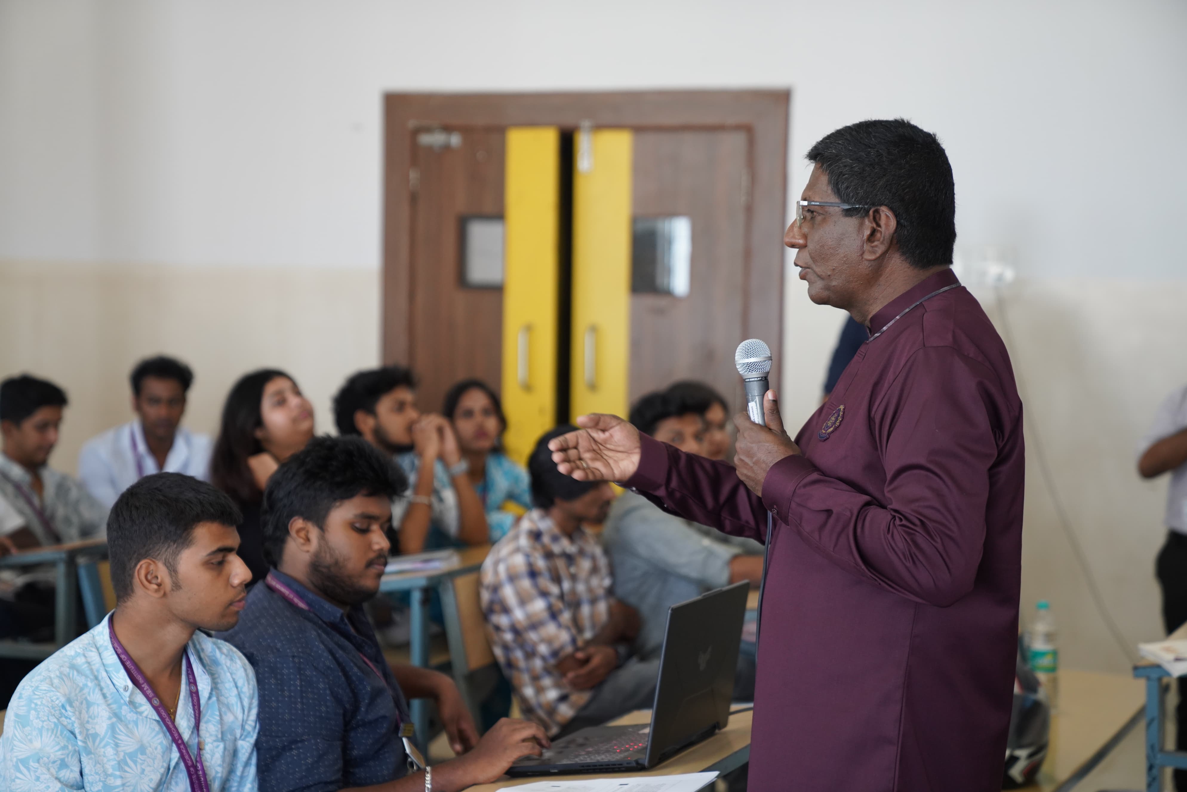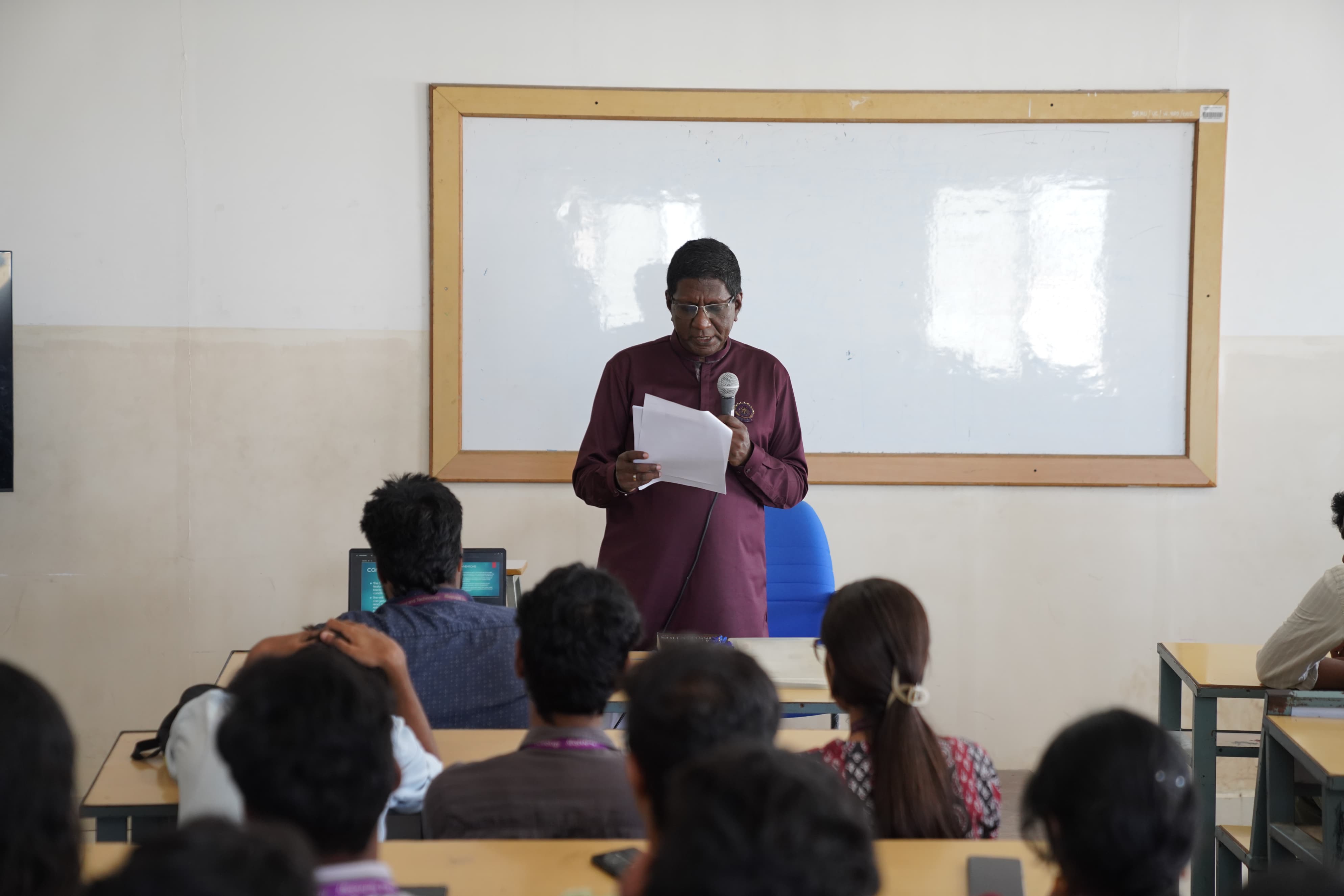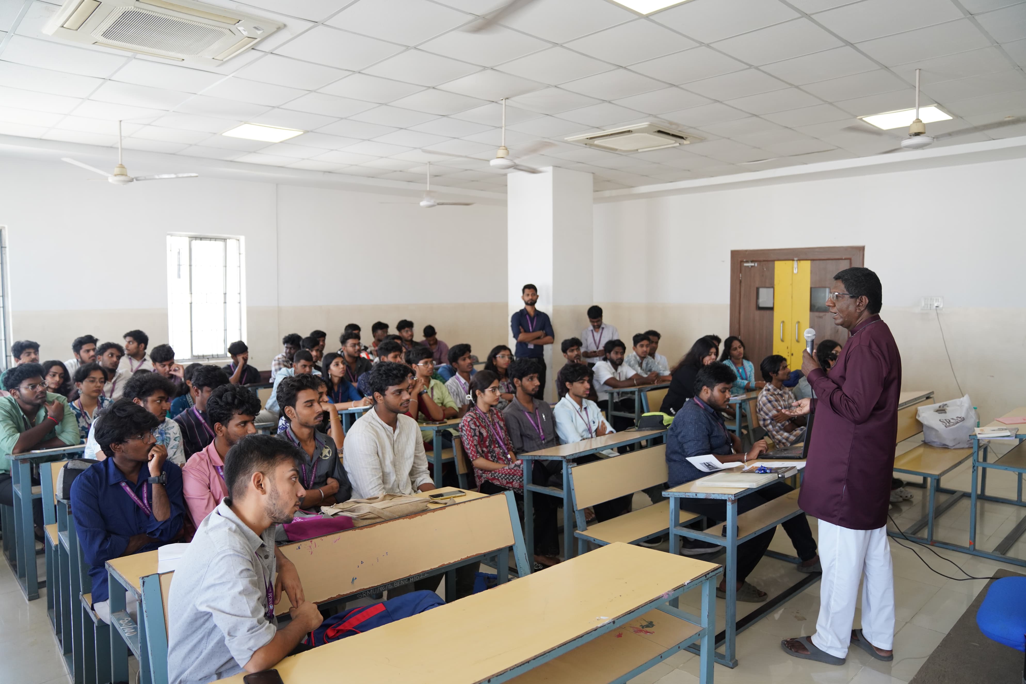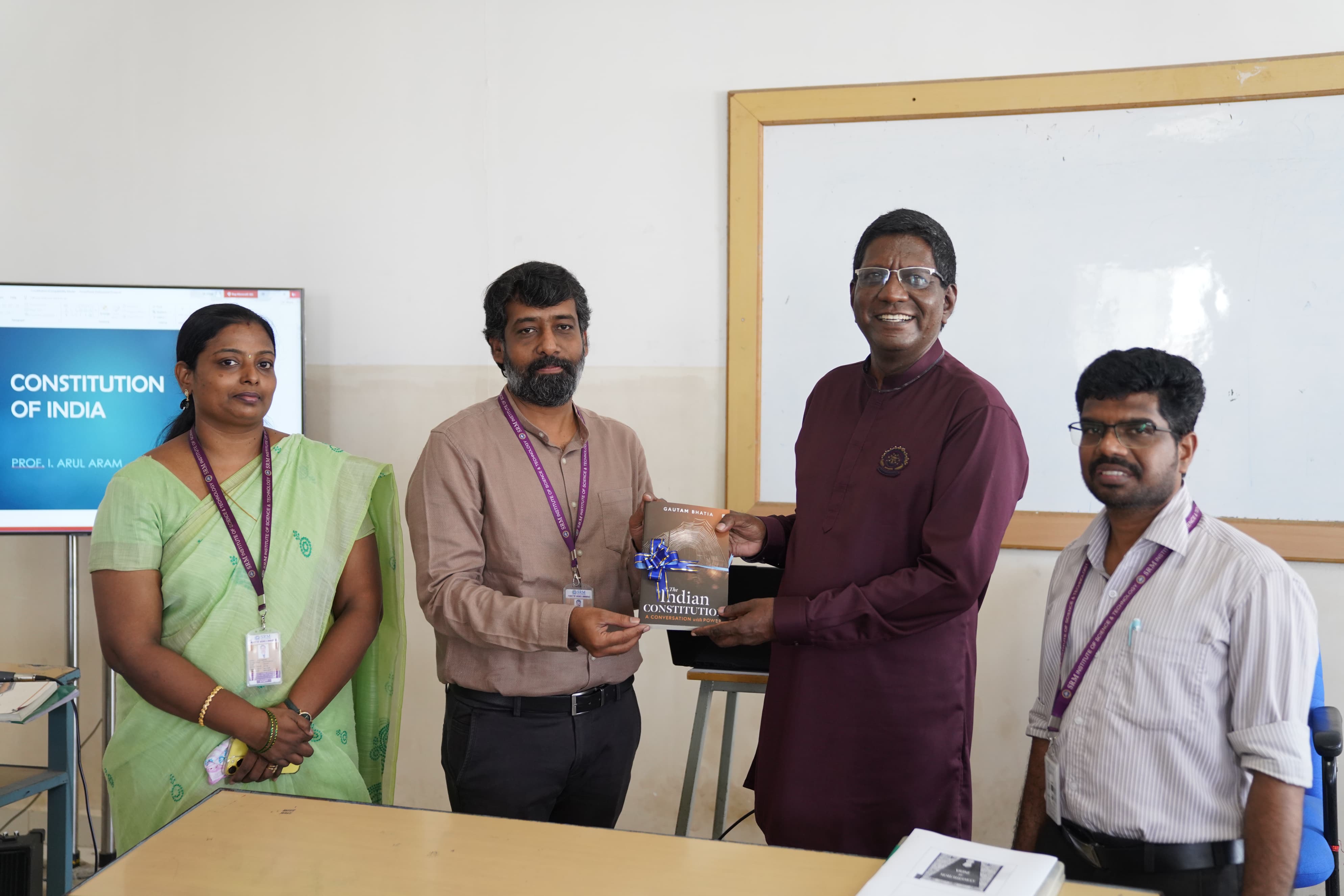The Faculty of Science and Humanities, School of Media Studies, Department of Visual Communication, SRMIST organized a Guest Lecture titled “From Paper to Practice: Shaping Governance through Constitutional Values” on 30th July 2025 from 10:00 AM to 12:00 Noon at Classroom 602, 6th Floor, PG Dental Block. The session was graced by the presence of Prof. Dr. I. Arul Aram, Special Journalist at The Hindu, as the Chief Guest. He shared deep insights into the Indian Constitution and related legal frameworks, simplifying key concepts and values for better student understanding. The lecture also included an interactive segment where students actively engaged with the guest, asking questions and clarifying doubts. Dr. Arul Aram emphasized crucial points and memory techniques to help students retain key constitutional terms and ideas effectively. The session provided a strong foundation in understanding the relevance of constitutional values in governance today. The session was coordinated under the guidance of Convenor Dr. V. Prabakaran (Head, Media Studies), Co-Convenor Ms. P. Yuvarani (Programme Coordinator, Viscom) and Staff Coordinator Dr.Akash J.H {Asst. Professor , Viscom).