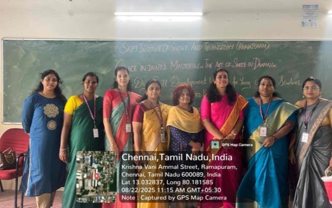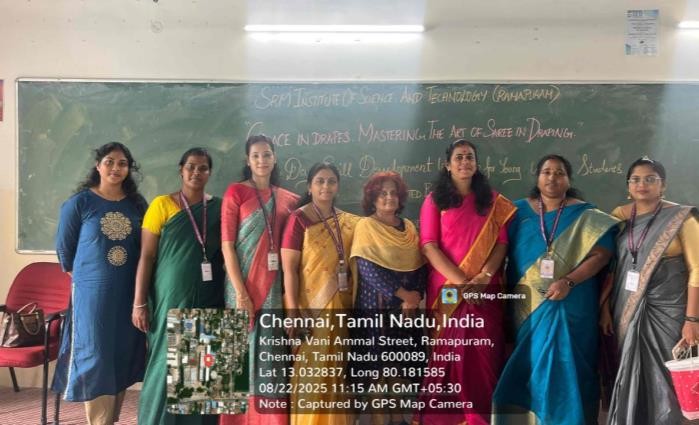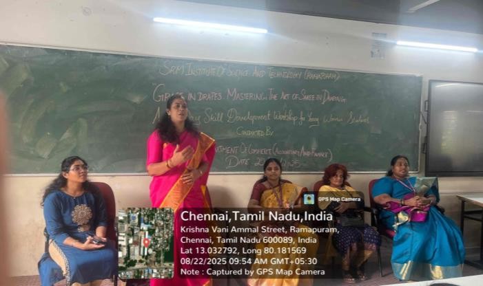 - The Faculty of Science and Humanities, Department of Commerce (Accounting & Finance), SRM Institute of Science and Technology, Ramapuram, organized a One Day Skill Development Workshop exclusively for young women students on the theme “Grace in Drapes: Mastering the Art of Saree in Draping”.